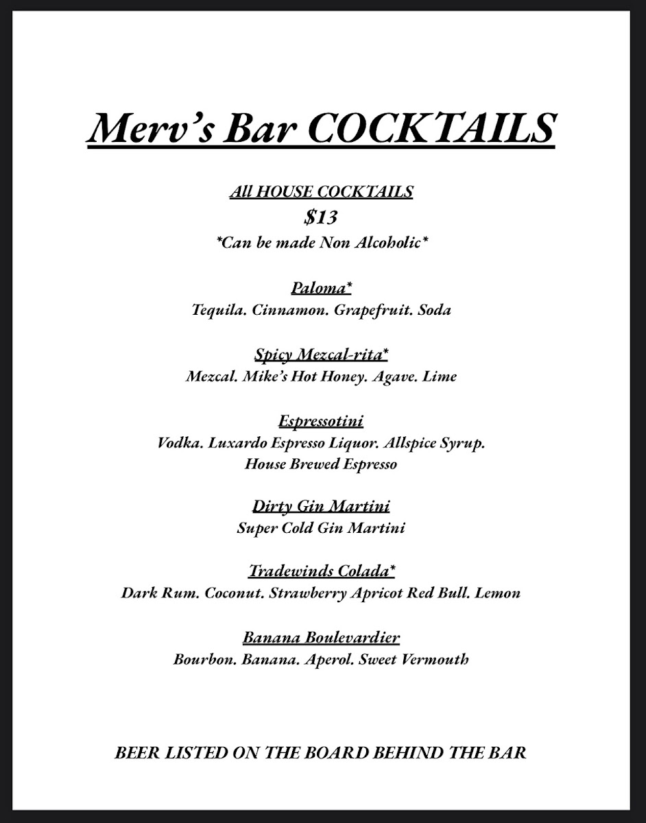 Join the Merv’s Bar Newsletter